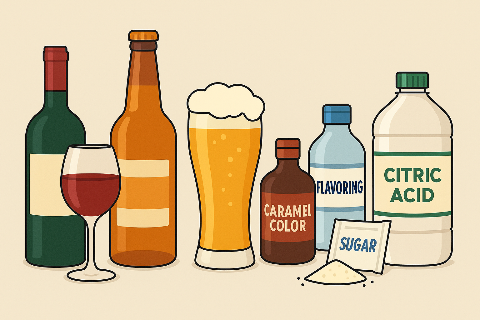 | 아황산염 (SO₂ 등) | 대부분 와인, 일부 맥주 | 천식 유발, 알러지, 미생물 불균형 | 표기 기준 10 mg/L 이하 | 하루 50 mg 이하 |